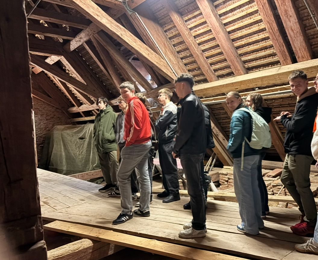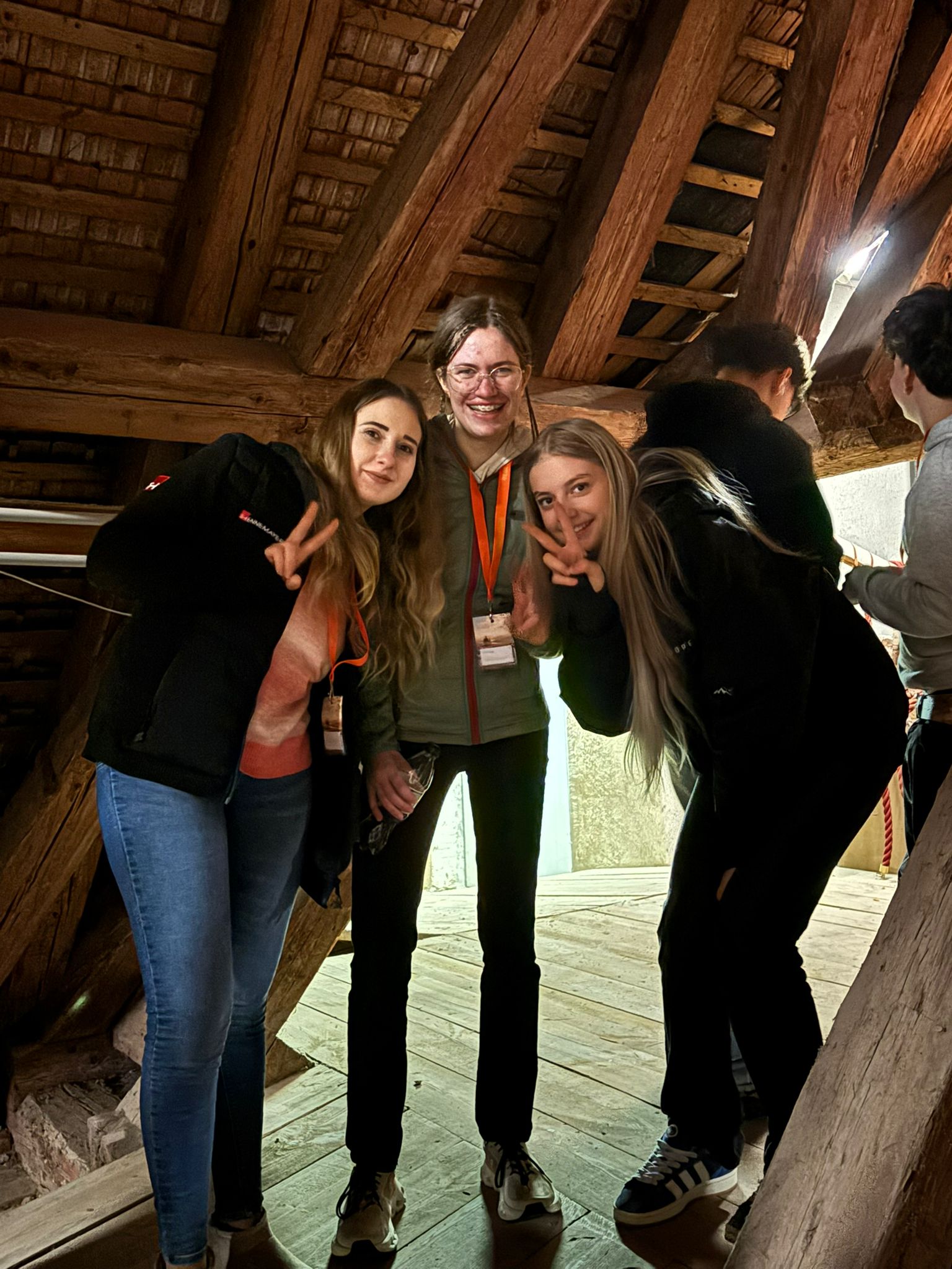 Zwei Schüler des Stiftsgymnasiums führten uns kompetent durch das Stift und ermöglichten spannende Einblicke in Bereiche und Wirkungsstätten, die Besucherinnen und Besuchern normalerweise nicht zugänglich sind. Nach dem Mittagessen erhielt unsere Gruppe zudem die Gelegenheit, den Dachboden zu erkunden.